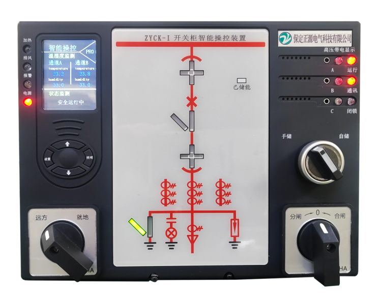 全新概念的開關(guān)柜智能操控裝置。產(chǎn)品功能強大,適用6-35KV 戶內(nèi)開關(guān)柜,中置柜、手車柜、固定柜、環(huán)網(wǎng)柜等多種開關(guān)柜。具有動態(tài)一次模擬圖、高壓帶電顯示、自動加熱除濕數(shù)值顯示及控制、斷路器分合狀態(tài)指示、儲能指示、接地開關(guān)狀態(tài)指示、小車位置指示、分合閘回路完好指示、人體感應(yīng)帶電提示及柜內(nèi)照明、以及無線測溫功能、語音防誤提示等功能,可取代現(xiàn)有的一次回路模擬圖、帶電顯示器、自動加熱除濕控制器、斷路器分合按鈕等。并且具有RS485通訊接口,能夠使開關(guān)柜進(jìn)一步,智能化,網(wǎng)絡(luò)化,數(shù)字化。方便廣大用戶使用與操作。